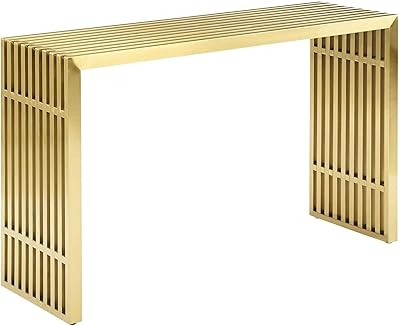 Modway Gridiron Contemporary Modern Gold Stainless Steel Console Table